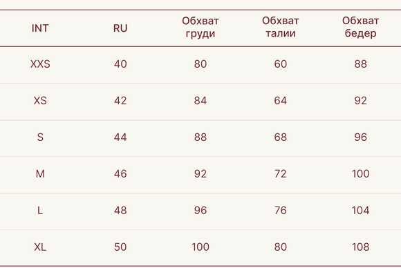 На модели размер XXS/XS Параметры модели: рост 171 см, ОГ 80 см, ОТ 59 см, ОБ 87 см Все размеры указаны в сантиметрах.